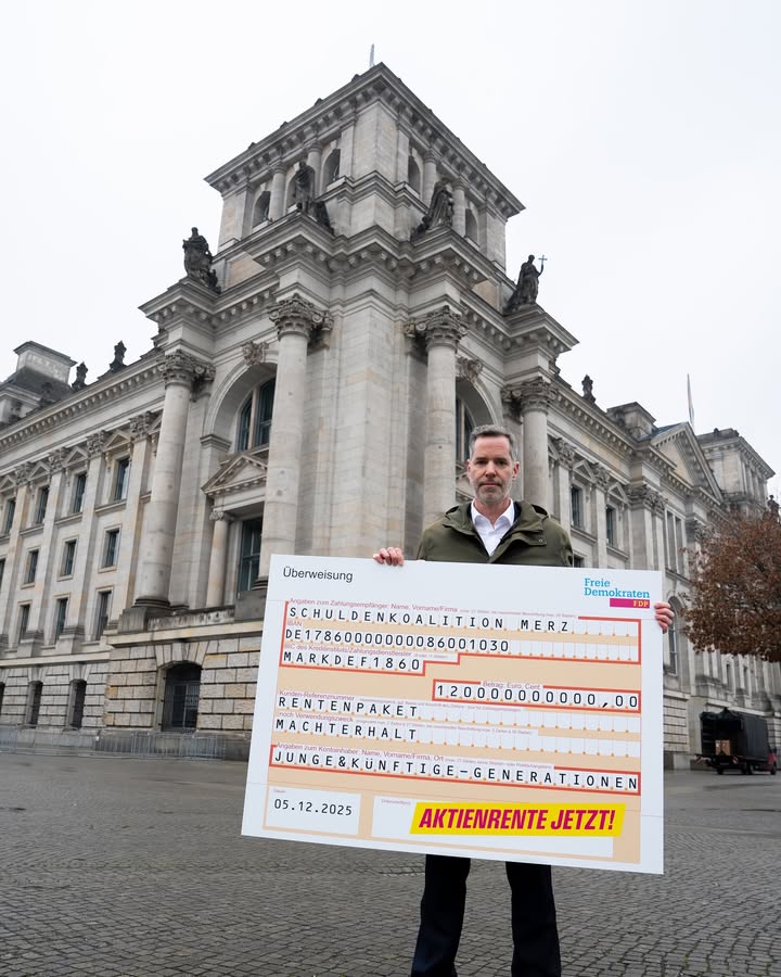Christian Dürr: „Dass mit dem Rentenpaket ein Gesetz beschlossen wird, von dem Friedrich Merz selbst sagt, dass nichts dafür spricht, zeigt, dass seine Koalition heute gescheitert ist. Es dient nur noch dem Machterhalt, aber nicht dazu, das Land besser oder die Renten sicher zu machen. Das Einzige, was die Koalition von Friedrich Merz noch zusammenhält, sind immer neue Schulden. Was man statt leerer Versprechen von Friedrich Merz jetzt eigentlich bräuchte – gerade bei der Rente – wären mutige Reformen, zum Beispiel mit einer Aktienrente.“